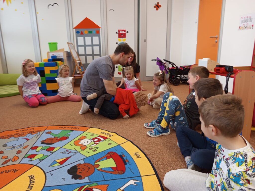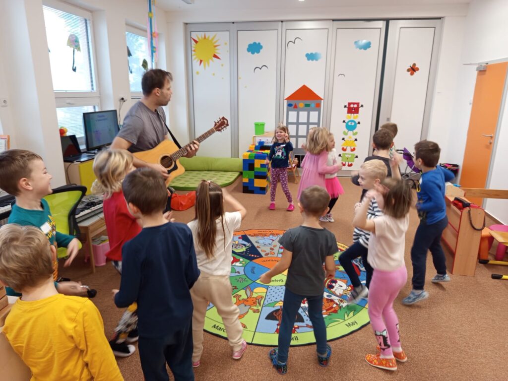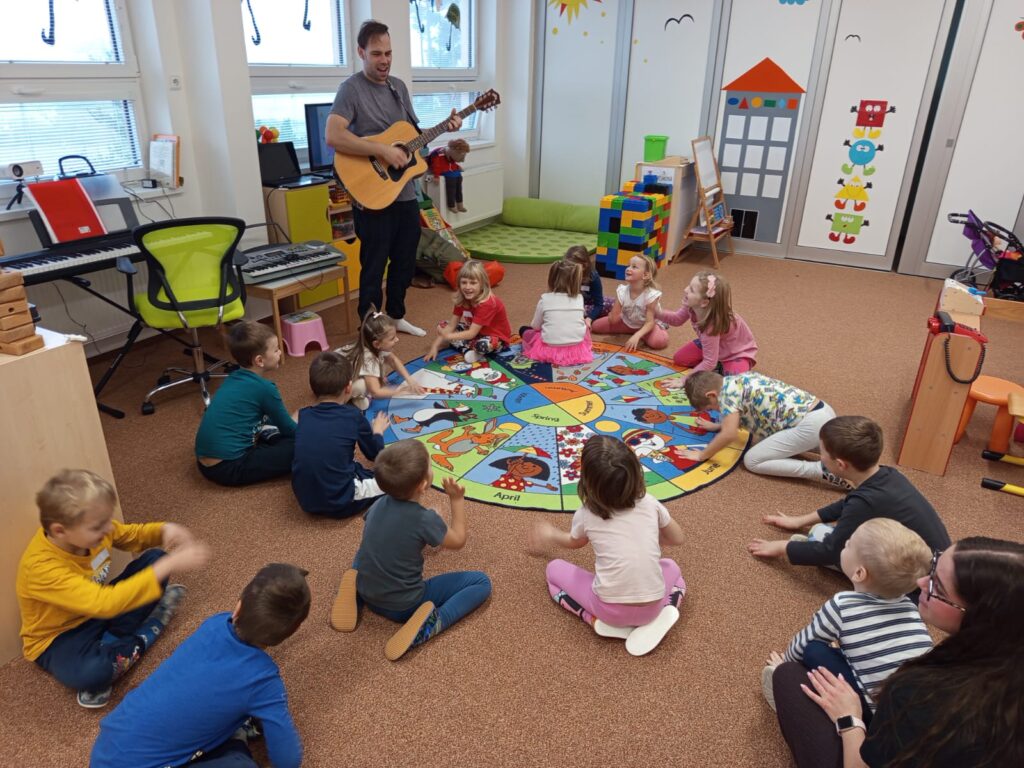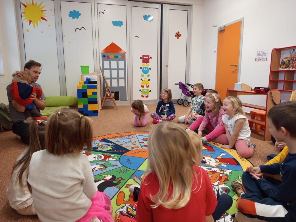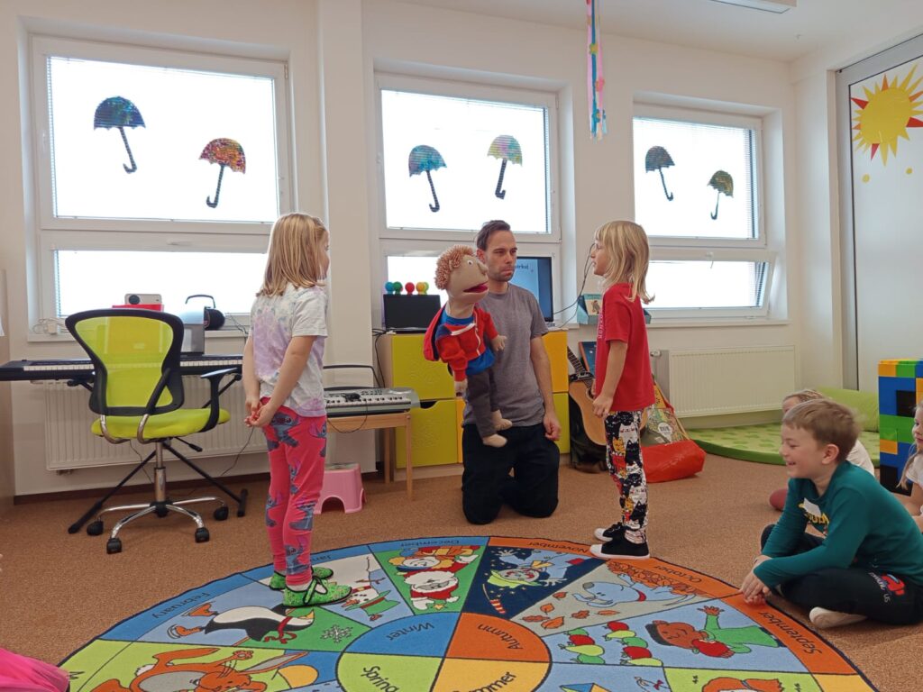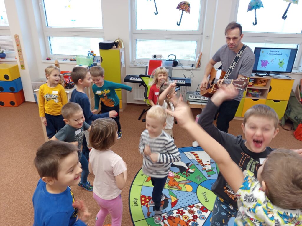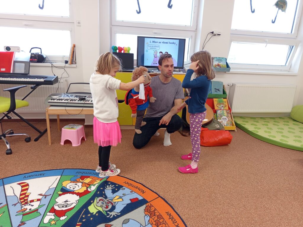Ve středu 12. listopadu nás ve školce navštívil pan Luboš Filip se svým kamarádem loutkou Radovanem a s programem Buďme kamarádi v rámci projektu Etické dílny. Učili nás, jak se chovat ke kamarádům, jak se bránit nevhodnému chování druhých. Povídali jsme si o emocích, o tom jak se cítíme v různých situacích. Vše bylo vedené zábavnou formou, povídání se prolínalo s písničkami v doprovodu kytary. Všichni jsme si program moc užili.