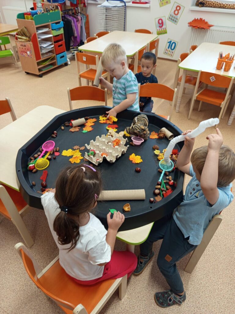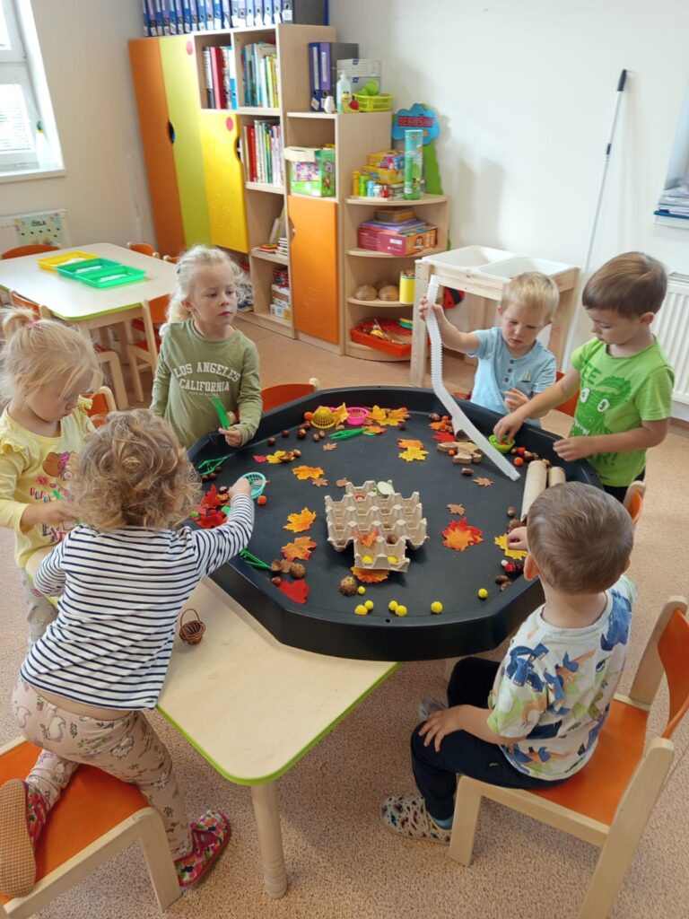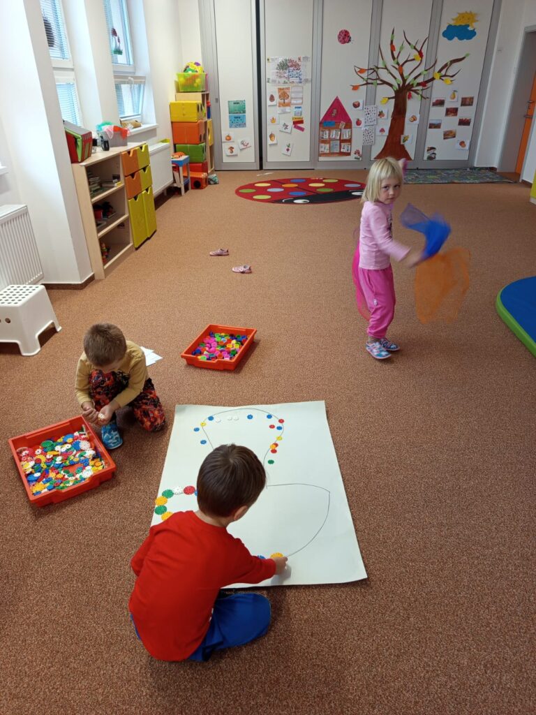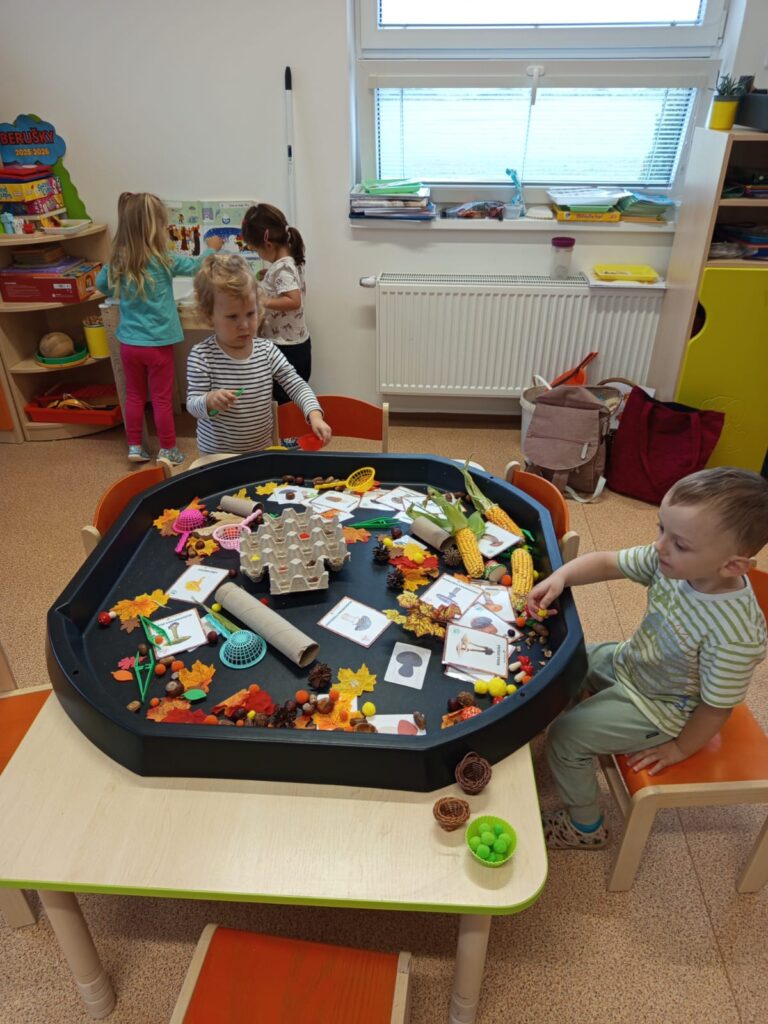 Na závěr měsíce nás navštívil skřítek Podzimníček, který dětem přiblížil kouzlo podzimu. Povídali jsme si o tom, co se v přírodě mění, proč listí mění barvu a jaké podzimní přírodniny můžeme sbírat.